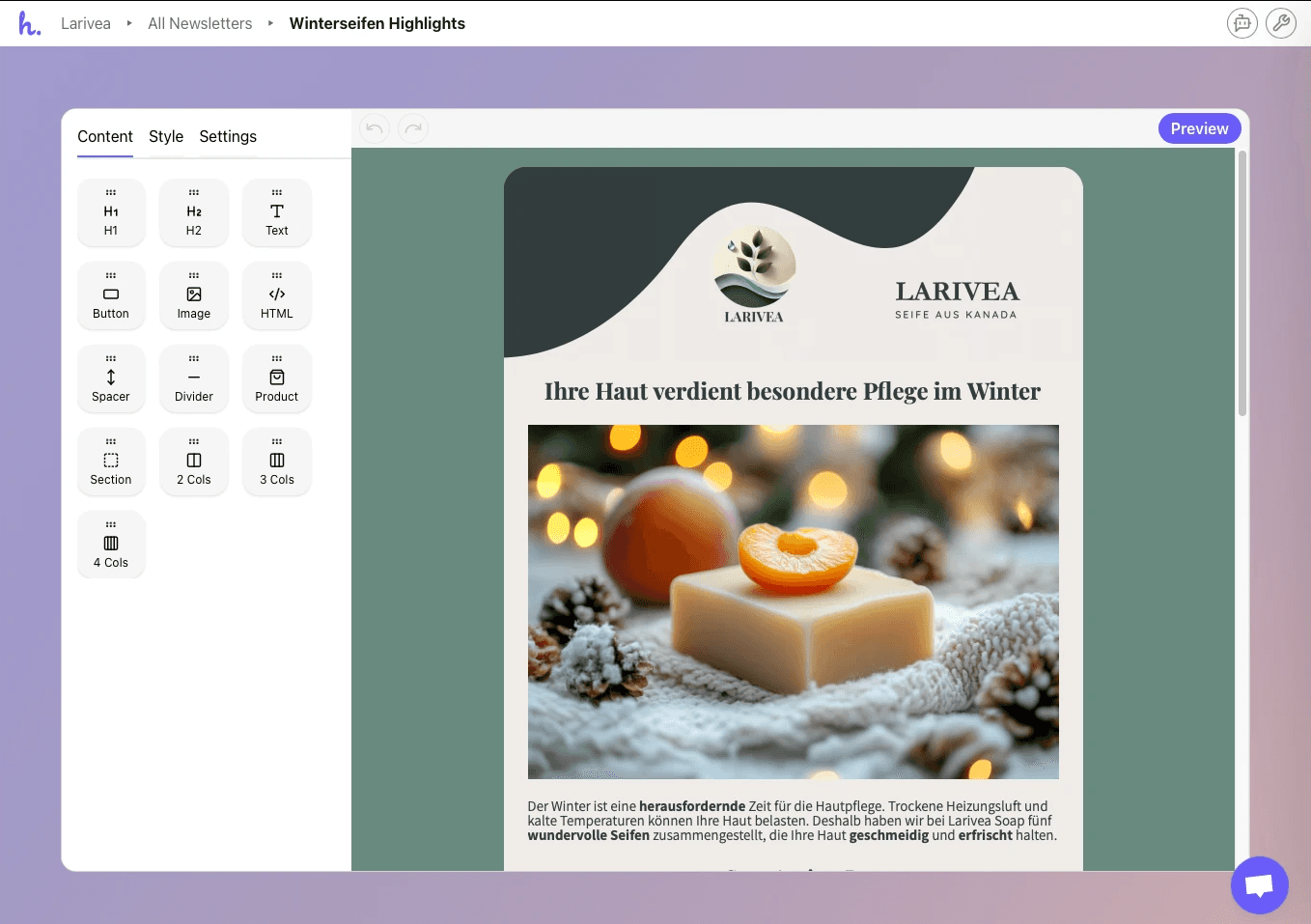 But then I saw what was possible. With just 3 words, I had a completely ready-to-send email created for me within 5 minutes. With really good texts, images, and links directly to the products. And the customers are also thrilled. Again and again, we receive thankful messages for the many tips in the emails. I'm blown away!